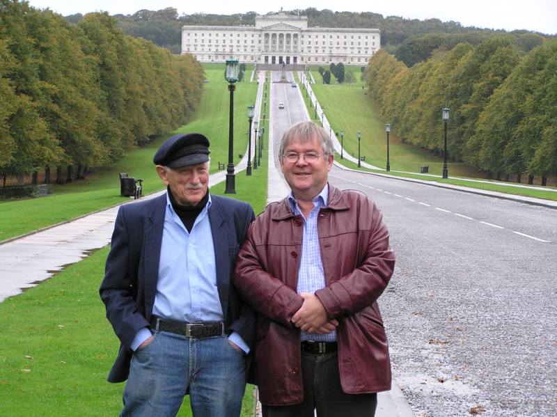 To the left: Good friends in front of Stormont Castle in Belfast 2005. Menakhem Ben-Yami, left, and Jon Kristjansson
