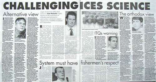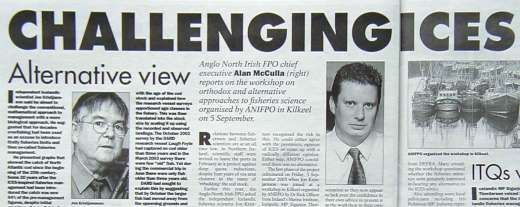 At the beginning of the summer Mr. Kristjansson spent a few weeks interviewing and working alongside fishermen from around the Irish Sea and from his base in Kilkeel he examined the orthodox science, as prescribed by ICES. In order to achieve a balanced view he also spoke with officials and fisheries scientists from the Government's Fisheries Division in Belfast. From the outset the remit he was given by ANIFPO was to tell the truth as he seen it. ANIFPO's directors recognised the risk in this. He could either agree with the pessimistic opinion of ICES or come up with a radically different opinion. Either way, ANIFPO considered they had no choice. There was no alternative.