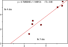 Aðhvarfsgreiningin sýnir að fylgni er þarna á milli, það sýnir fylgnistuðullinn. Línan er hins vegar ónothæf til þess að mæla afföll: Samkvæmt grunnforsendunni að Nn+1/Nn = e-Z (jafna 1.4), fæst jafnan