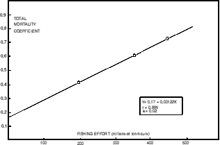 Gögnin sem notuð eru við ákvarðanir á dánartölu [Jón Jónsson 1960 og 1969, Fjölrit Hafró No. 31.] eru það ónákvæm að fráleitt er að segja að línan um sambandið milli sóknar og heildardánartölu skeri Y-ásinn í 0,2.